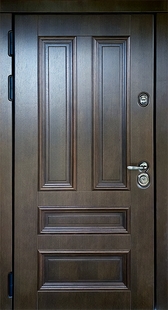 Входные двери с покрытием из натурального шпона – это сочетание надежности, долговечности и стильного дизайна, прекрасная альтернатива массиву. Для отделки мы используем шпон ценных пород дерева (дуб, орех и тд.). Двери выглядят благородно и презентабельно. МДФ-панели более устойчивы к перепадам температуры и влажности. При бережной эксплуатации и правильном уходе, срок службы дверей с натуральным шпоном составляет более 20 лет.